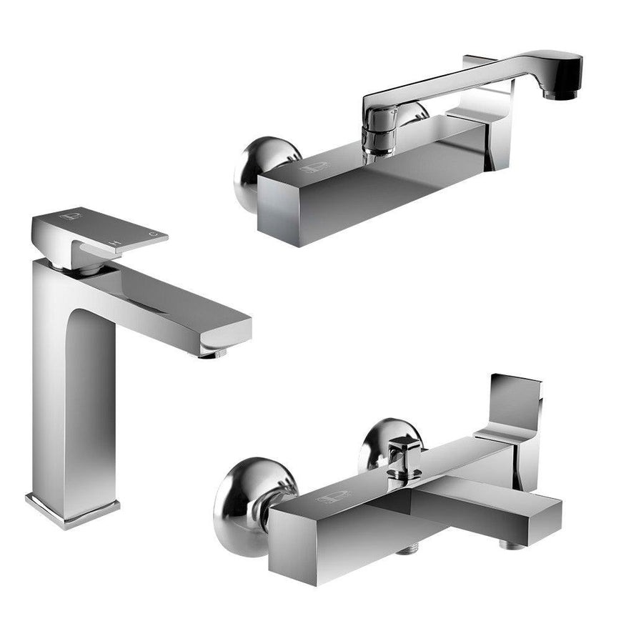 طقم خلاطات اكوا (خلاط المطبخ حائطى AQ-2 / خلاط حوض AQ-4 / خلاط بانيو AQ-1) من سفنكس عبده حنفيه