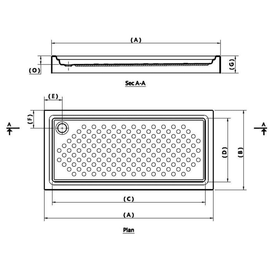 حمام قدم مستطيل 100 × 70 × 17 بالجانب إيديال ستاندرد