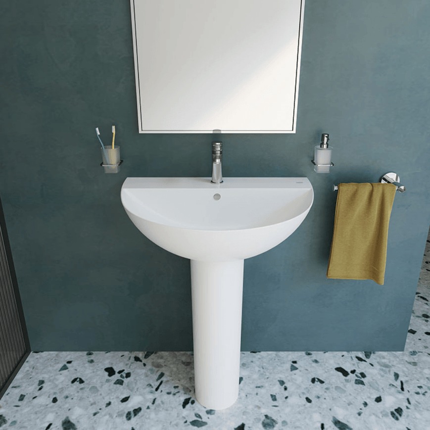 يتميز هذا الحوض بتصميمه العصري الذي يتماشى مع معظم الديكورات الداخلية للحمام. يوفر العامود الطويل دعماً إضافياً ويعزز من إستقرار الحوض، مما يجعله خياراً مثالياً للمساحات الحديثة التي تبحث عن مزيج من الجمال والعملية.