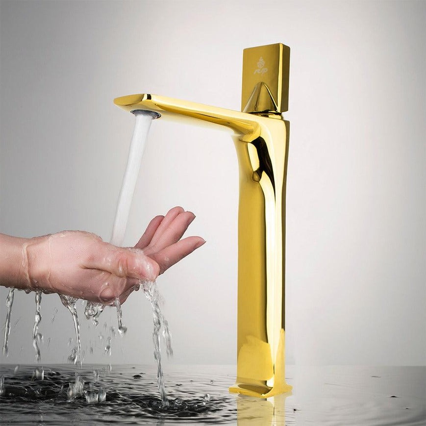 ( طلب مسبق ) خلاط حوض شجرة عالى 1031 Resp مقبض مربع راسى للتحكم فى المياة وبقنطرة عالية بطول 32 سم اللون ذهبى منتج مستور من ريسب