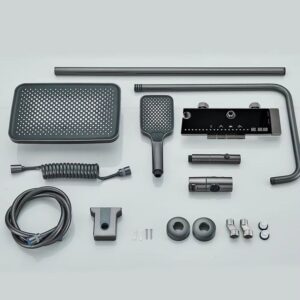 يتميز هذا النظام بوجود شاشة ليد مضيئة وخلاط نحاس عالي الجودة مع 4 أزرار بيانو للتحكم في تدفق المياه. كما يحتوي على عامود دش من الاستانلس ستيل مكون من قطعتين لسهولة ضبط ارتفاع الطاسة، مما يجعله اختيارًا مثاليًا للحمامات العصرية.