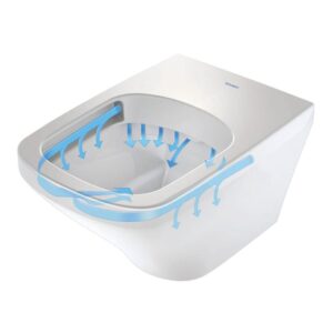 مرحاض معلق فاخر من العلامة الألمانية ديورافيت، موديل ديوراستايل، مصمم بتقنية ريمليس (Rimless) الحديثة التي تضمن تنظيفًا أفضل وكفاءة أعلى في التدفق. يتميز بلونه الأبيض الأنيق ويأتي شاملًا الدش الداخلي (الشطاف)، مجموعة التثبيت، والسيديلي سوفت كلوز (ذاتي الغلق)، ليوفر لك تجربة استخدام مريحة وعصرية.