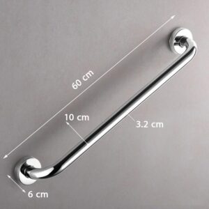 يبلغ طول المسند 60 سم، ويعتمد على ماسورة قطرها 3.2 سم ليوفر قوة تحمل ممتازة. بعد التثبيت، يبعد المسند عن الحائط بمقدار 10 سم (بروز)، مما يتيح مسافة مريحة للإمساك. يأتي الطقم شاملًا لمجموعة التثبيت الكاملة، مما يجعل عملية التركيب سهلة وسريعة.
